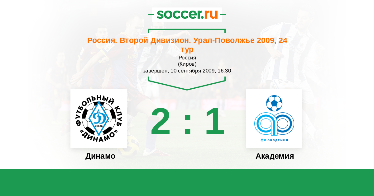 Россия. Вторая лига. Группа 4 02.06.2009 Академия Логотип футбольный клуб Академия (Тольятти) 1:0 Логотип футбольный клуб Динамо Киров Динамо Киров