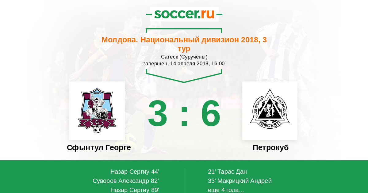 Протокол матча Сфынтул Георге против Петрокуб