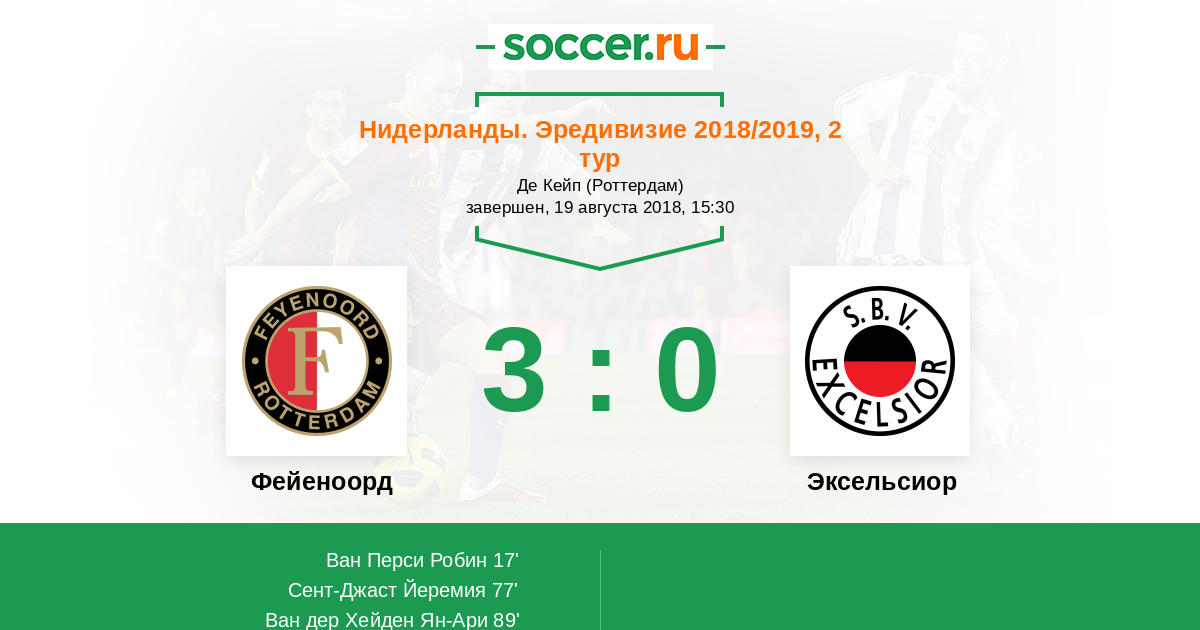 Протокол матча Фейеноорд против Эксельсиор