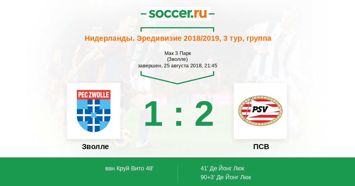 Протокол матча Зволле против ПСВ