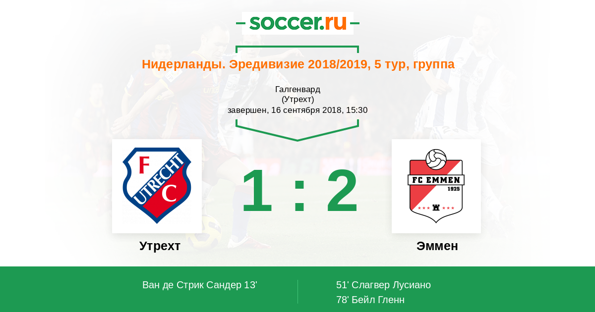 Протокол матча Утрехт против Эммен