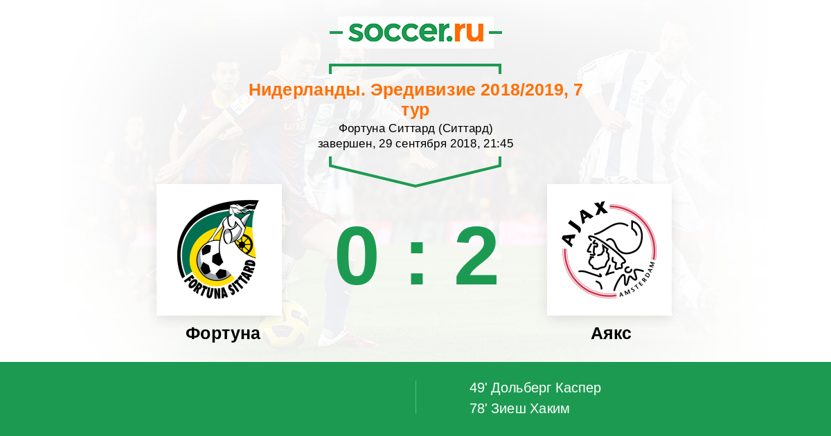 Протокол матча Фортуна против Аякс
