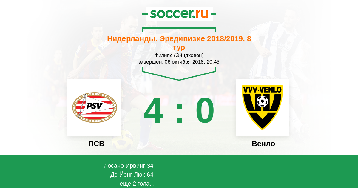 Протокол матча ПСВ против Венло