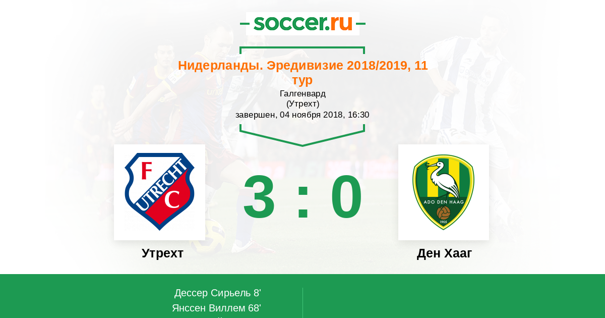 Протокол матча Утрехт против Ден Хааг