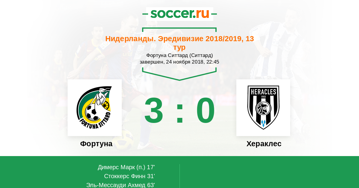 Протокол матча Фортуна против Хераклес