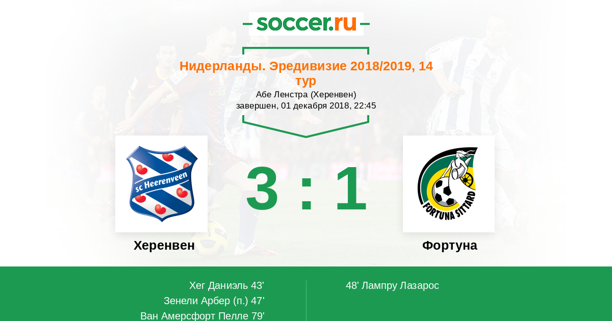 Протокол матча Херенвен против Фортуна