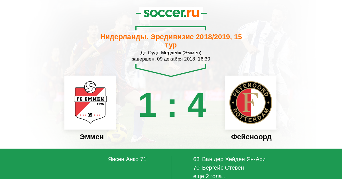 Протокол матча Эммен против Фейеноорд