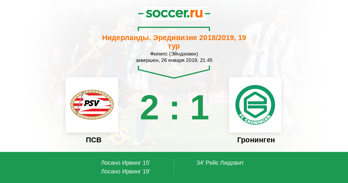 15' (1:0) Лосано Ирвинг (11) (Бергвейн Стевен (17))