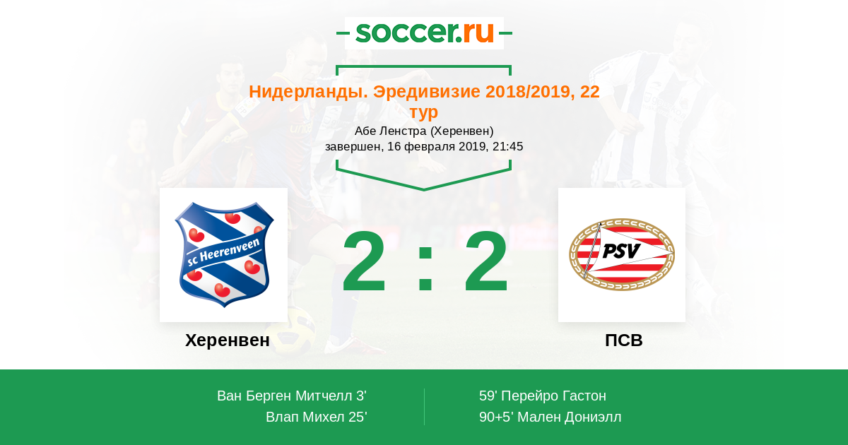 Протокол матча Херенвен против ПСВ