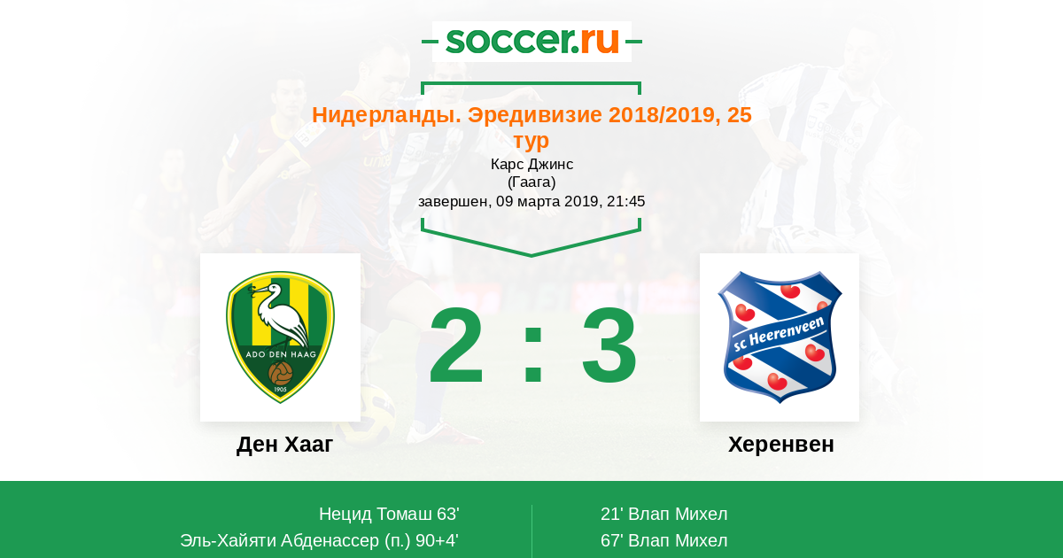 Протокол матча Ден Хааг против Херенвен