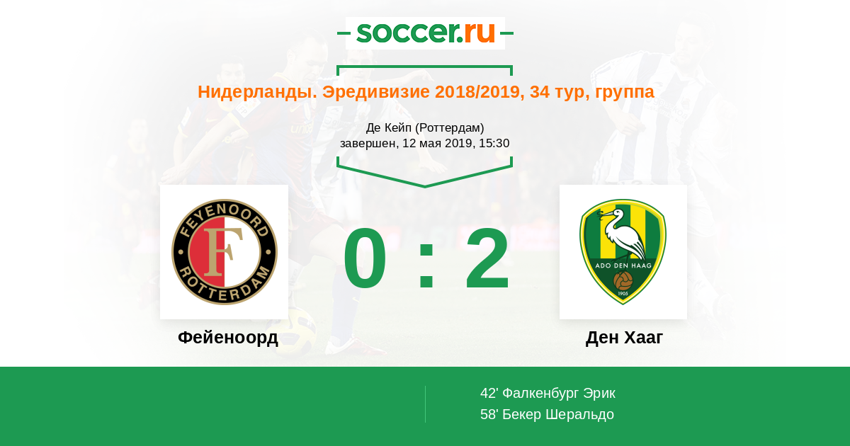 Протокол матча Фейеноорд против Ден Хааг