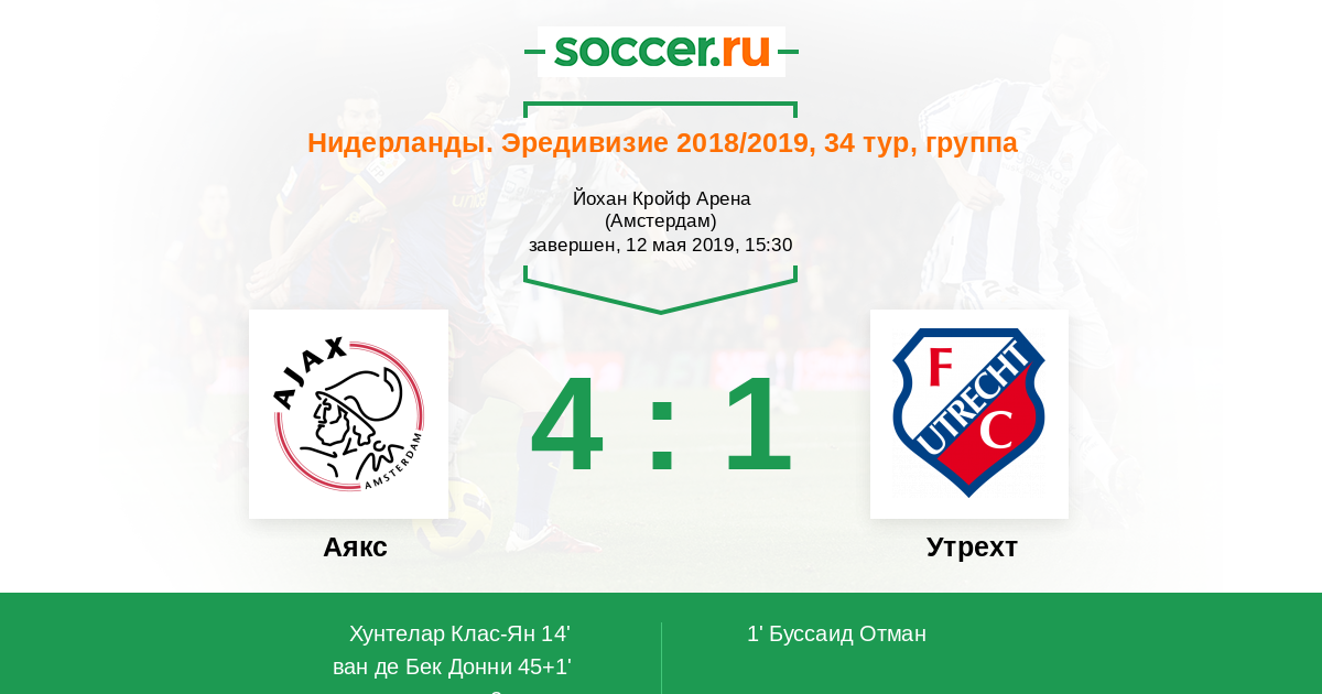 Протокол матча Аякс против Утрехт