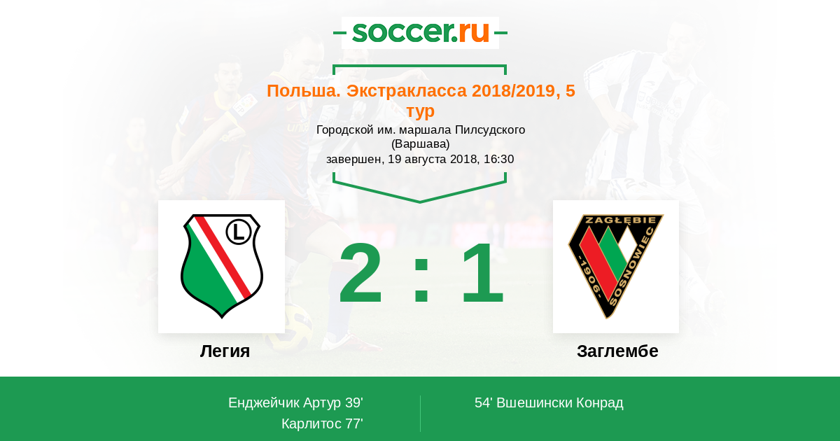 Протокол матча Легия против Заглембе