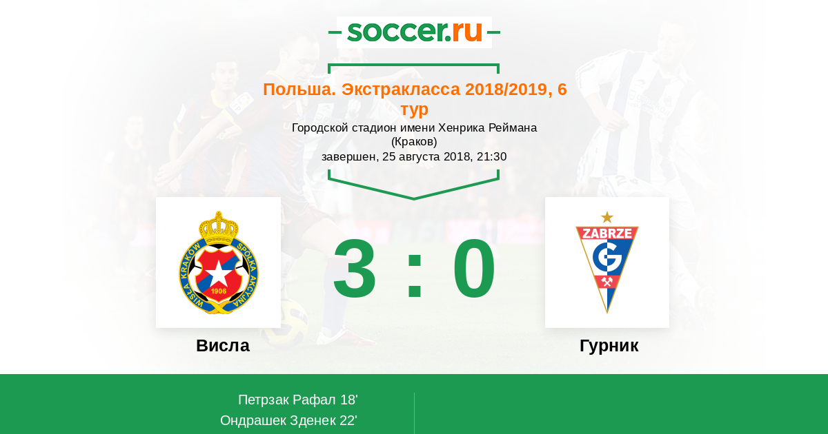 Протокол матча Висла против Гурник