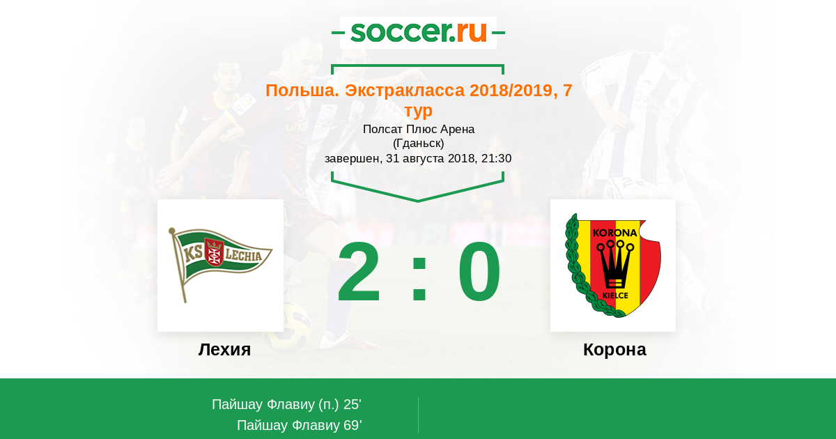 Протокол матча Лехия против Корона