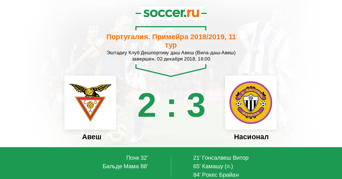 21' (0:1) Гонсалвеш Витор (80) (Камашу (19))