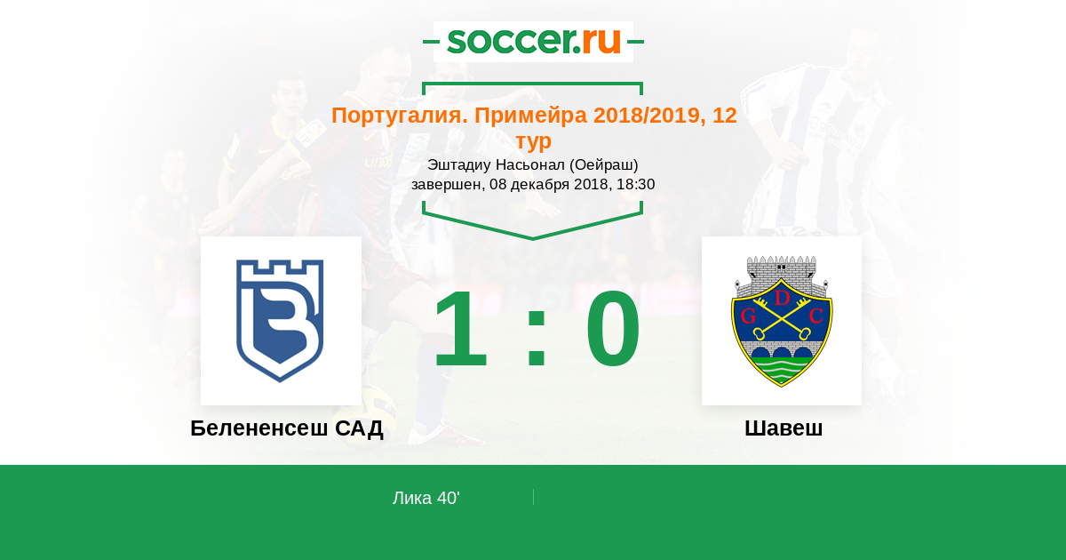 Протокол матча Белененсеш САД против Шавеш