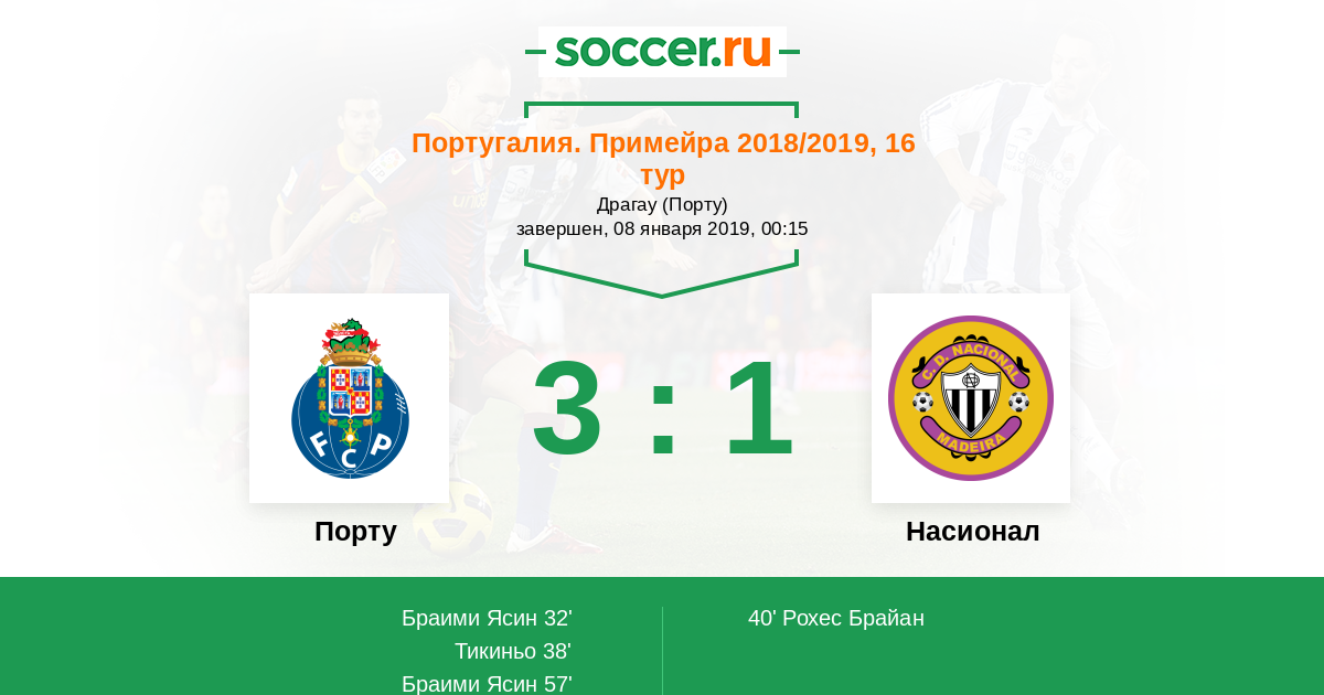 Протокол матча Порту против Насионал