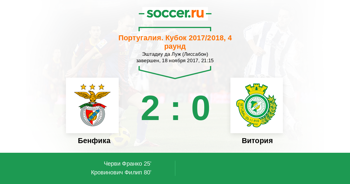 Протокол матча Бенфика против Витория