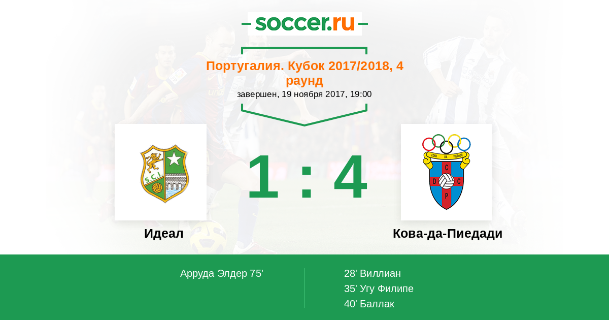 Протокол матча Идеал против Кова-да-Пиедади