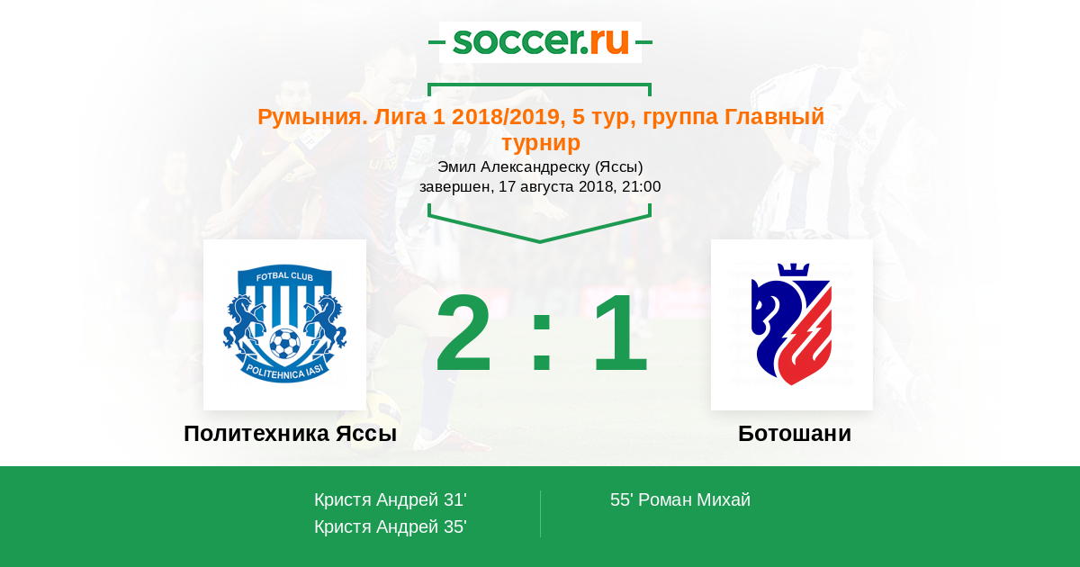 55' (2:1) Роман Михай (9) (Читоска Себастьян (92))