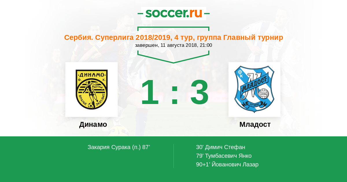 Протокол матча Динамо против Младост