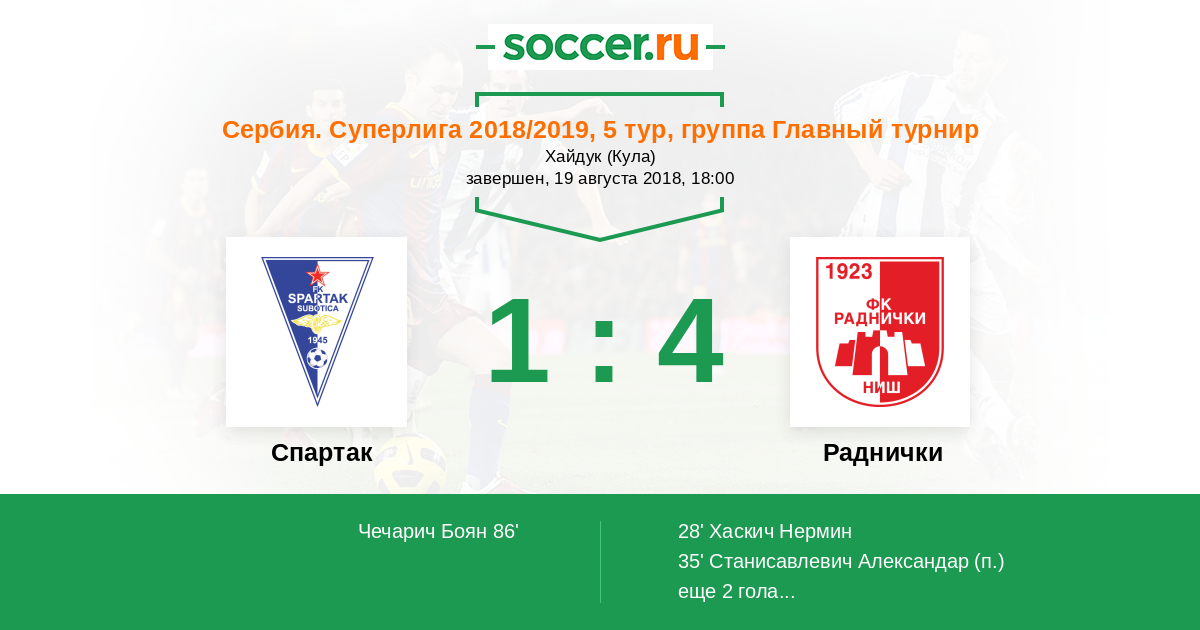 Протокол матча Спартак Суботица против Раднички