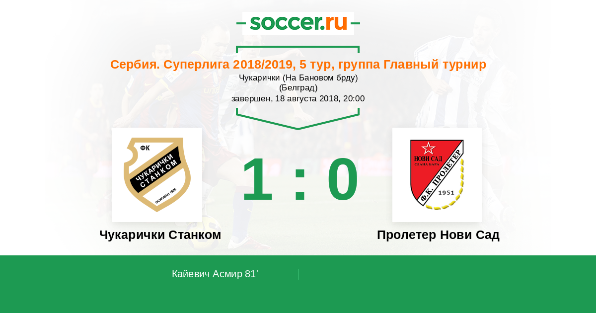 Протокол матча Чукарички Станком против Пролетер Нови Сад