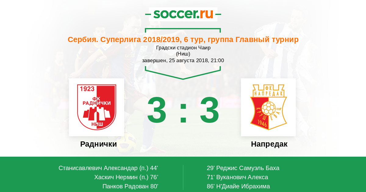 Протокол матча Раднички против Напредак