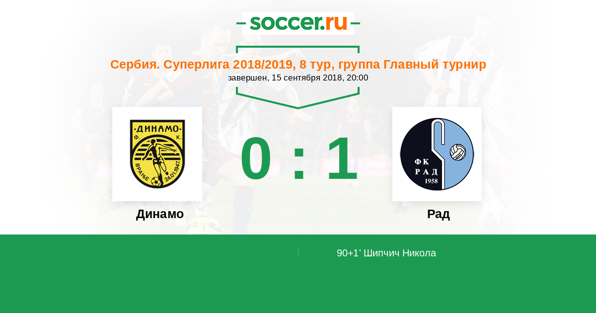 Протокол матча Динамо против Рад