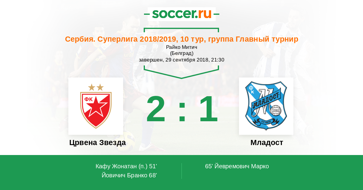 Протокол матча Црвена Звезда против Младост