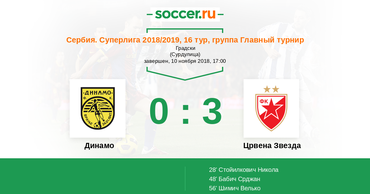 Протокол матча Динамо против Црвена Звезда