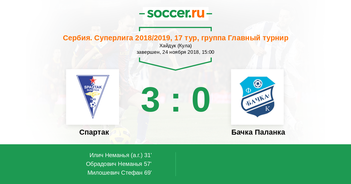 Протокол матча Спартак Суботица против Бачка Паланка