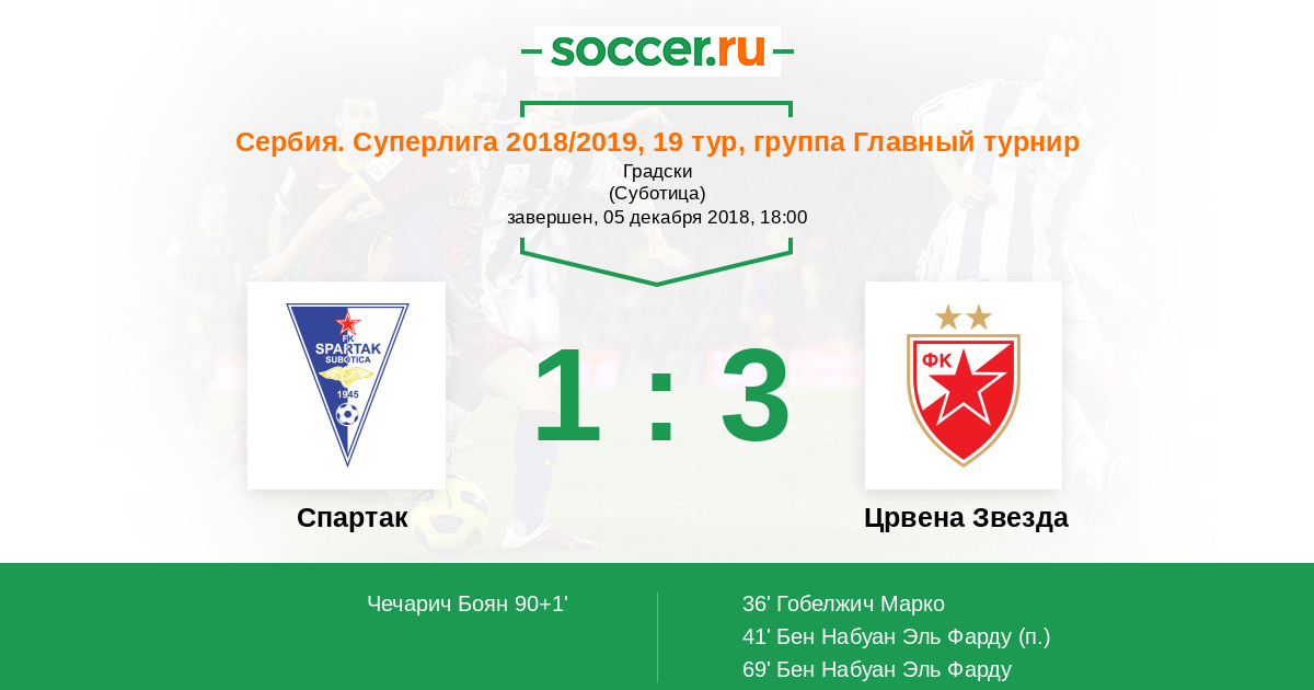 Протокол матча Спартак Суботица против Црвена Звезда