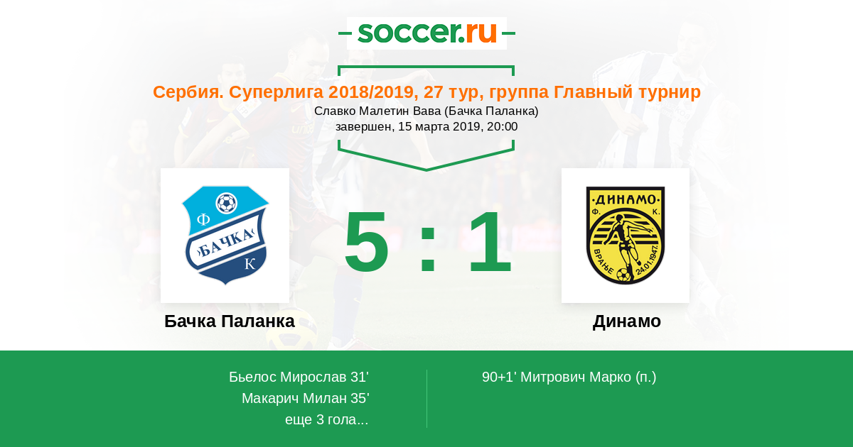 Протокол матча Бачка Паланка против Динамо