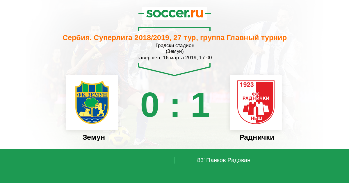 Протокол матча Земун против Раднички