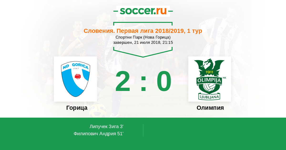 Протокол матча Горица против Олимпия