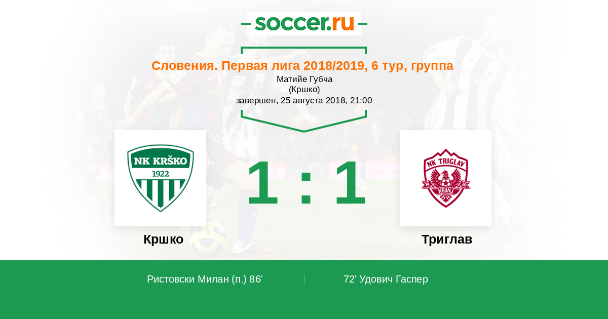 Протокол матча Кршко против Триглав