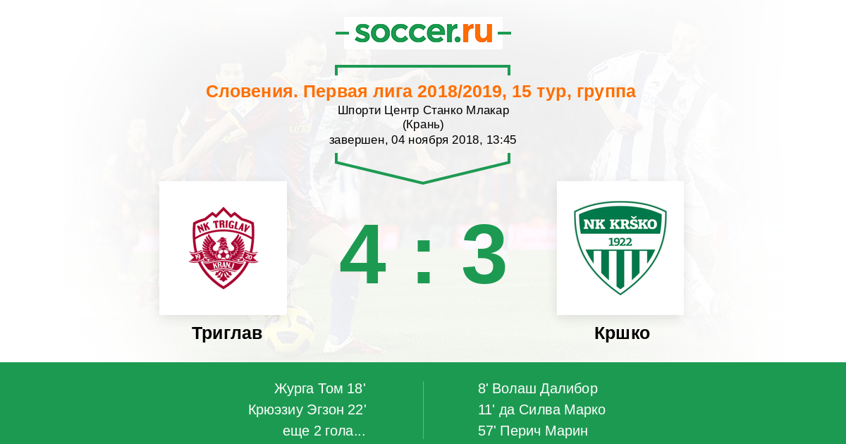 Протокол матча Триглав против Кршко