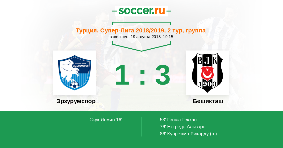 Протокол матча Эрзурумспор против Бешикташ