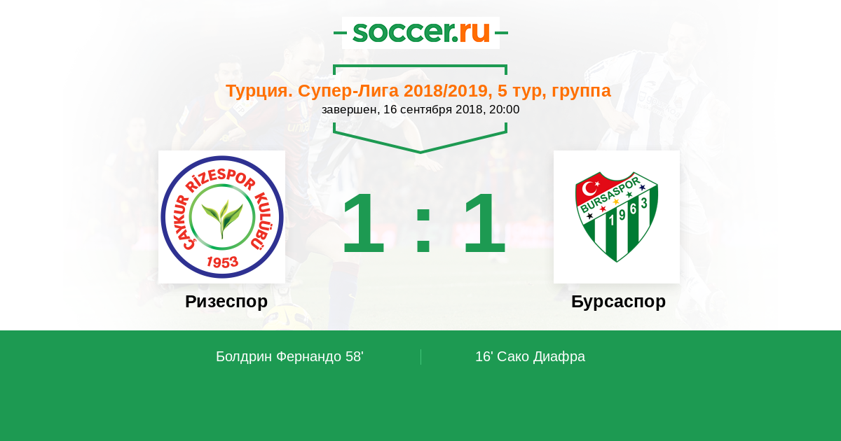 Протокол матча Ризеспор против Бурсаспор