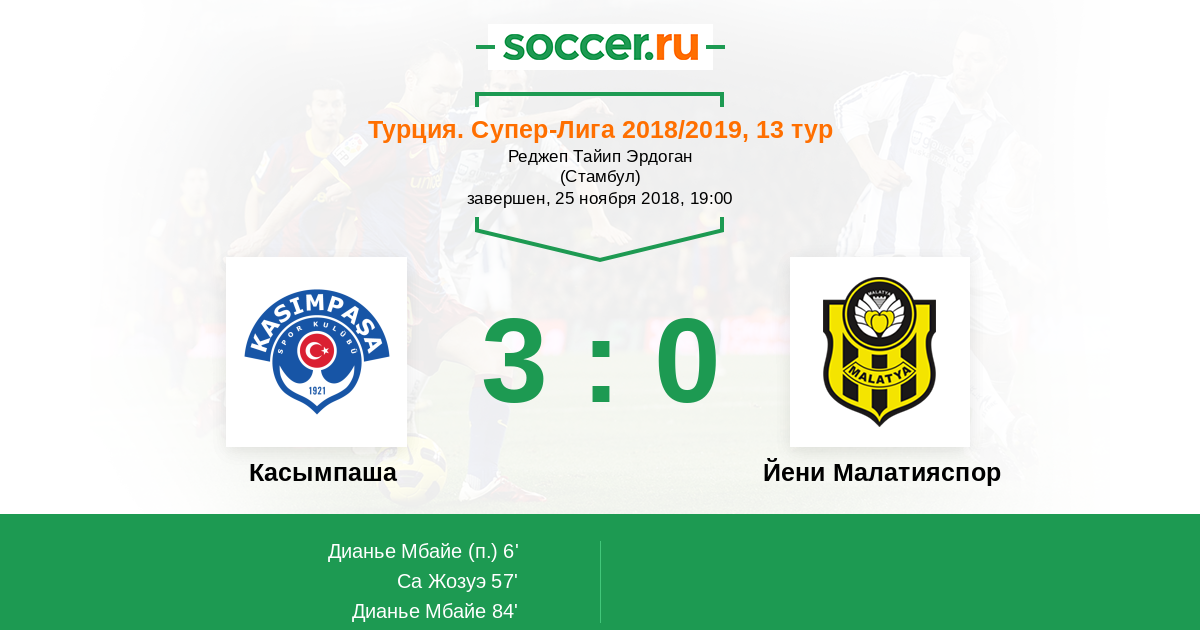 Протокол матча Касымпаша против Йени Малатияспор