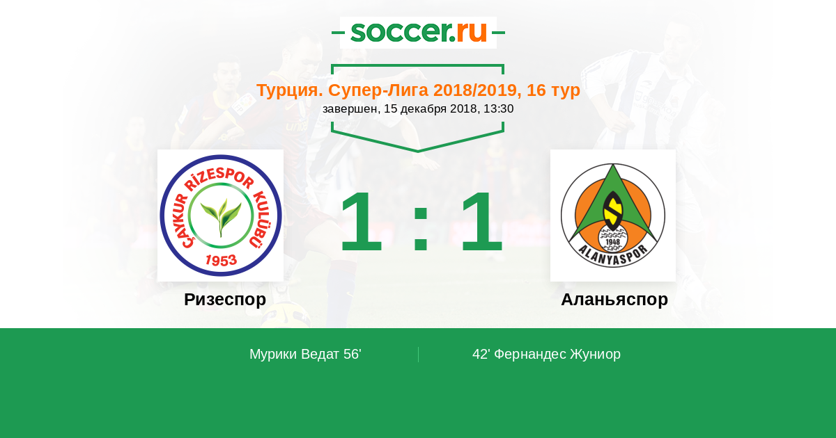 Протокол матча Ризеспор против Аланьяспор