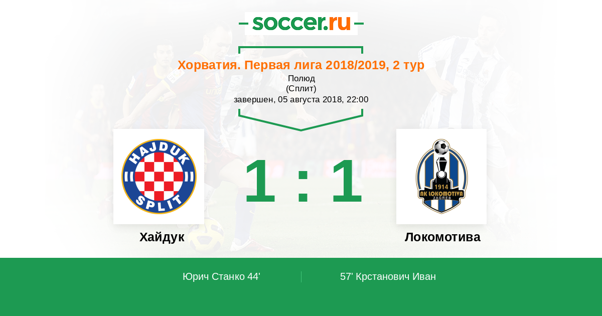 Протокол матча Хайдук против Локомотива