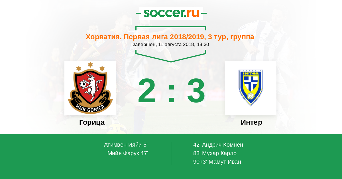 Протокол матча Горица против Интер