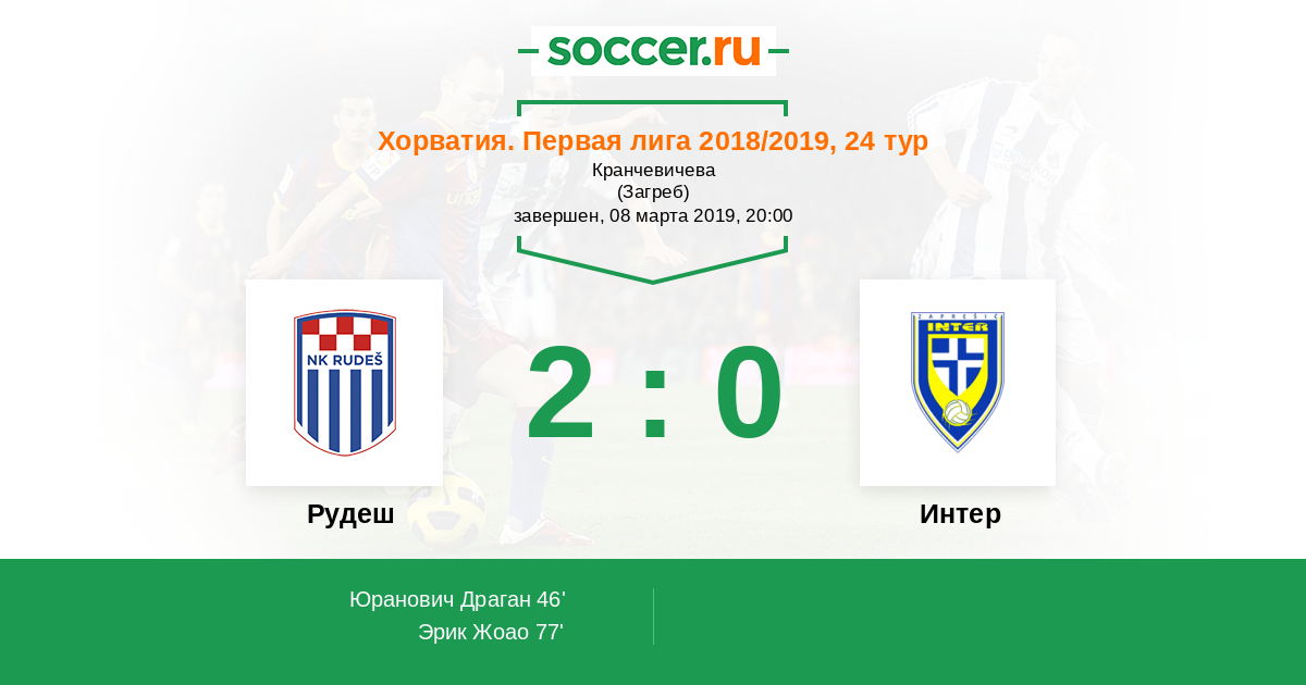 Протокол матча Рудеш против Интер