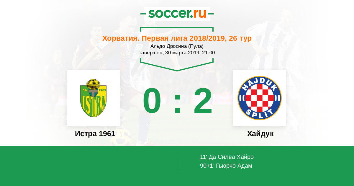Протокол матча Истра 1961 против Хайдук