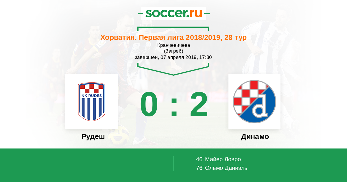Протокол матча Рудеш против Динамо