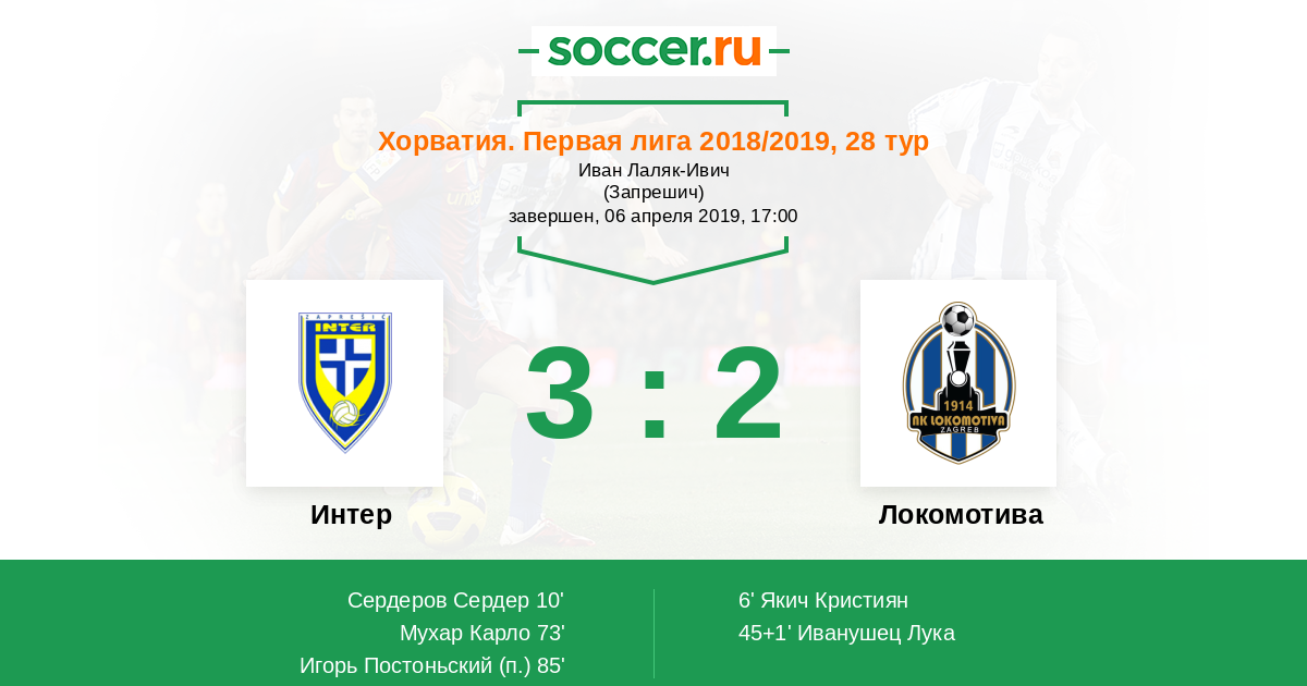 Протокол матча Интер против Локомотива