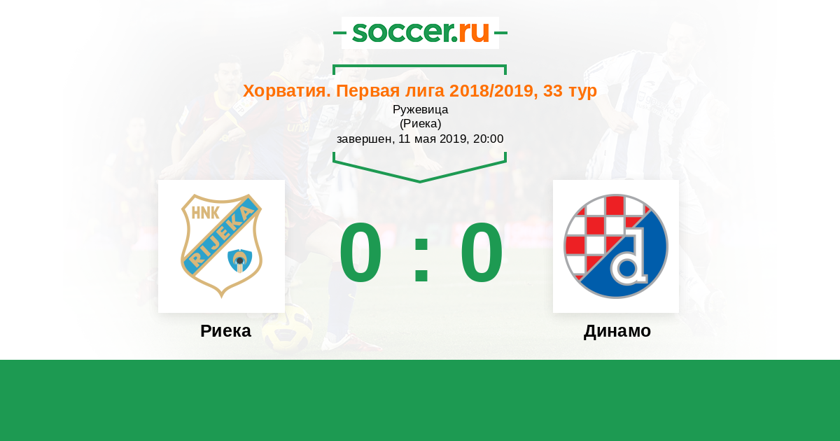 Хорватия. Первая лига 10.03.2019 Динамо Логотип футбольный клуб Динамо (Загреб) 3:1 Логотип футбольный клуб Риека Риека